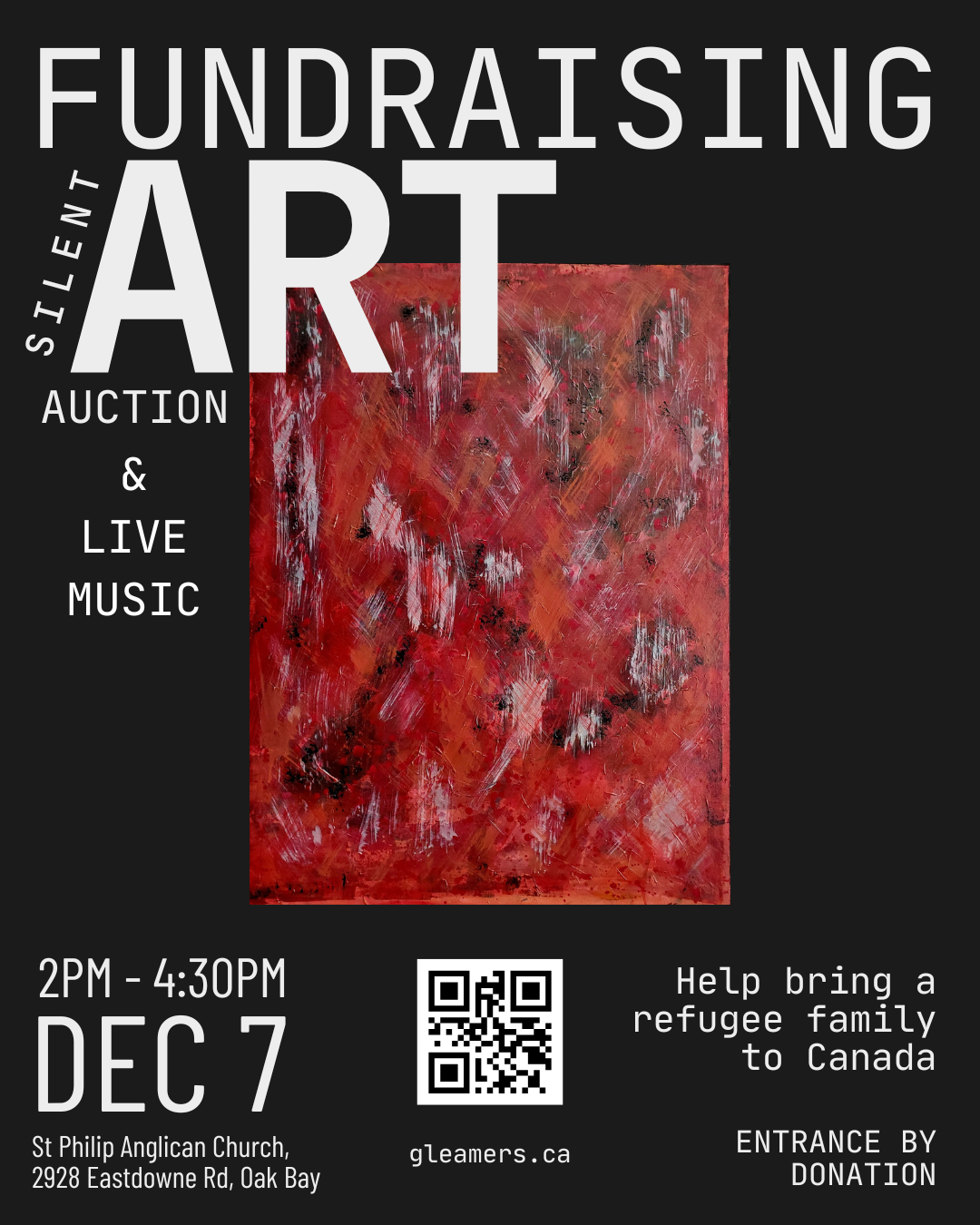 To help reach this goal, St. Philip Anglican Church will host the Gleams of Hope Silent Art Auction Fundraiser on Sunday, December 7, 2025, at 2 p.m. Join us for an afternoon of art, community, and compassion. Proceeds from the auction and associated donations will directly support the family’s sponsorship costs as well as help with R's medical costs.
